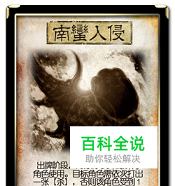 南蛮入侵:南蛮入侵效果为除自己之外的所有人必须出一张杀,否则受一点伤害,可以用无懈可击抵挡,无懈可击只能让一个角色不用出杀,而不能解除南蛮入侵。定位为AOE伤害,不分敌我。