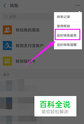 点击【延时转账服务】。