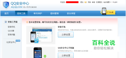 在弹出的页面中可以选择“密保手机”“QQ安全中心手机版”这是腾讯默认的绑定手机的密保工具,也是相对安全的办法。