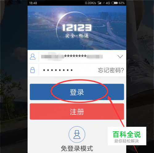 . 首先,我们打开交管12123APP在交管12123的登录页面,填写登录好自己的账号和密码 。 .