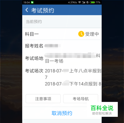 . 在进入日期预约选择页面之前,系统会弹出一个“考试预约须知 ”的注意事项,我们直接点击“阅读并同意 ”按钮 。 .