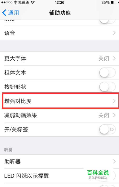 打开“设置-通用-辅助功能”,找到“增强对比度”;