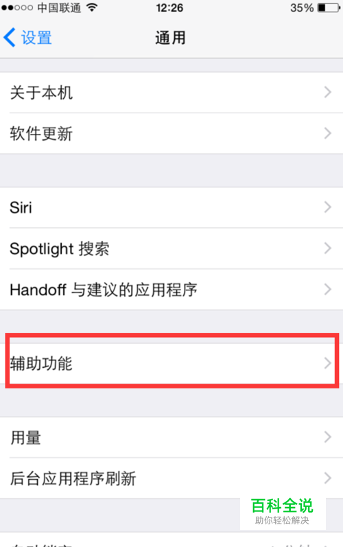 降低亮色程度以后,如果还觉得不够,可以打开iphone 的滤镜功能,进入“设置-通用-辅助功能”,选择“缩放”;