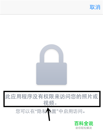 首先,给大家展示不能读取相册的提示,不同应用可能会有所差别,但是设置都是统一的。