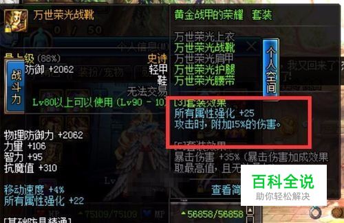 本次搭配方案推荐防具穿万世三件套配合强散或者天御之灾五件套。前者拥有不错的属强加成比后者容易得到,后者五件套有着不错的白字加成,两者都可以完美避免与名刀的暴击伤害冲突。