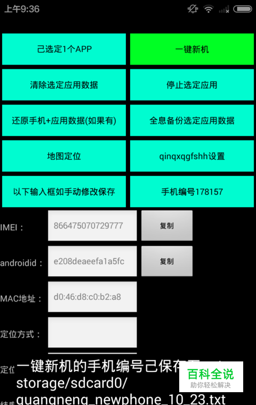 第一个按钮选到你要修改的应用,修改仅对选定的应用起效,再点一键新机如按钮变色即表示安卓改机软件修改手机型号完成。
