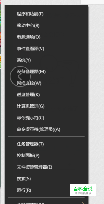 我们右键点击电脑左下角的四格图标,进入运行选项