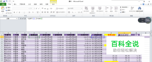 第一步我们要根据停放时间来进行计算。停放了14个小时21分钟,我们先计算小时,即用left函数提取14,然后乘于4(因为一个小时4个15分钟),再乘以收费的金额即1.5元,那么公式的前一部分即为=LEFT(J2,2)*4*E2,其中E2是收费金额。