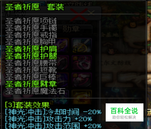 异界三选择三期勇者装备圣者祈愿,部位:头肩,下装,左曹