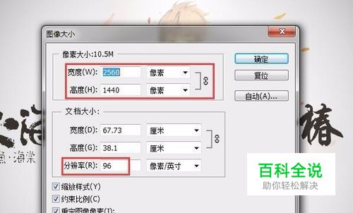 最后,我们就可以在图像大小窗口中看到图片的像素和分辨率了,具体的数值和上面的方法查看到的数值是一样的。