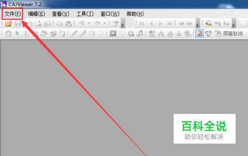 首先需要在电脑上安装CAJVIEWER阅读器,然后打开该阅读器。 选中菜单栏左上角的文件按钮。