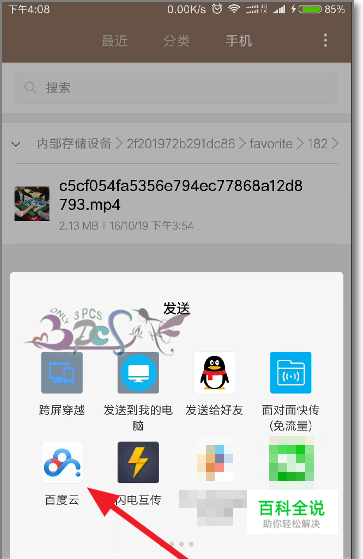 只要手机安装了百度网盘,则可以直接选择上传到百度网盘中。