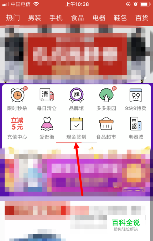 首先在手机上打开并登录拼多多App,并在首页面 现金签到 。