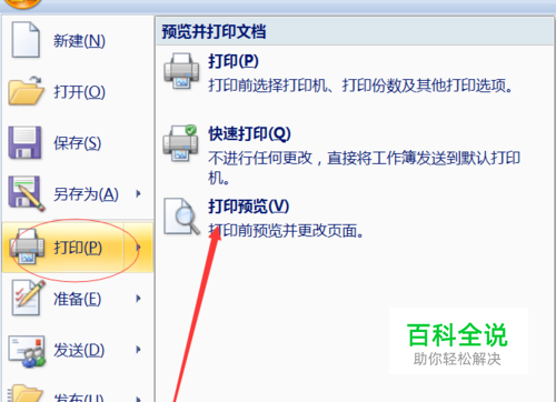 鼠标放在“打印”上,会出现新的菜单栏,找到打印菜单里的打印预览,,然后点击进入,如上图