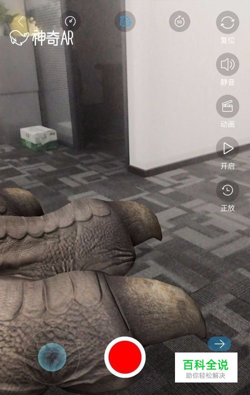 打开神奇AR,点击底部的AR按钮,打开很多AR效果,随意选择一个,比如霸王龙