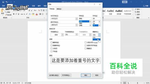 点击“字体”,选择“着重号”。