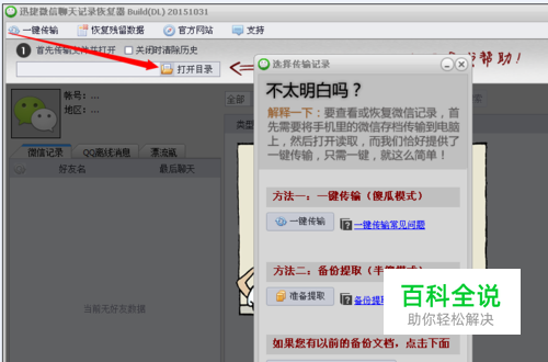 在打开的界面上按照指示打开目录后将聊天记录一键传输。如果在操作之前已进行过数据备份的话,那么可以直接跳转到“选择自己备份的目录存档”。