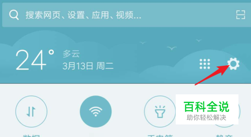 点击打开手机的下拉菜单,点击上方的设置图标。