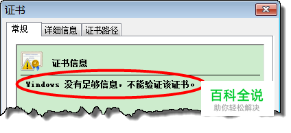 Windows没有足够信息,不能验证该证书",是因为该证书的颁发机构的证书,也就是颁发者证书还没有安装到受信任的证书存储区域,下面具体说明解决过程。