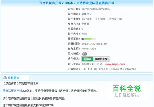 是选择下载网址,我一般选择的是www.67pp.com,如果你有其他的网址,也可以尝试一下,藏宝湾我也试过,但是需要注册什么的,很是麻烦,还是喜欢这个网址。