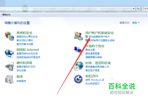 当然,你也可以不用命令符去设置电脑登录密码,同样的在开始键中我们找见控制面板,并且在控制面板中找见用户账户和家庭安全,如下图所示: