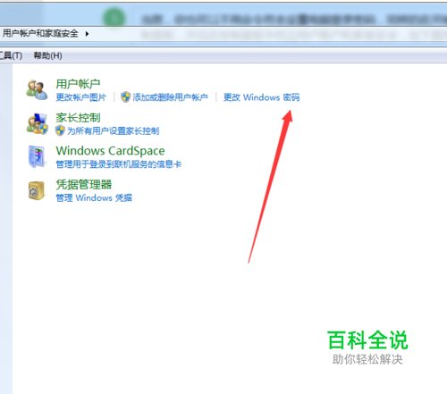接着进入到用户账户和家庭安全,就会看见在第一个大标题下有个更改window密码的小标题,如下图所示: