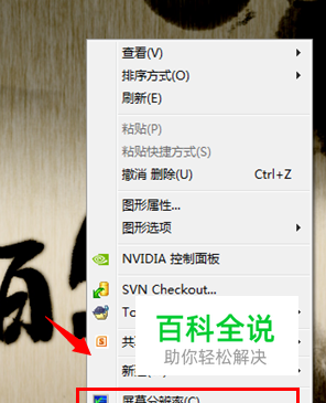 首先,在电脑桌面空白位置右键,弹出右键设置菜单,弹出右键菜单,然后我们直接选择【屏幕分辨率】