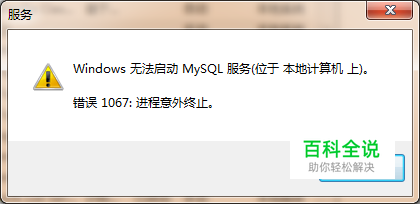 MySQL服务可能会应为一些原因导致无法启动(错误:1067),这里大家描述一下作者的解决办法