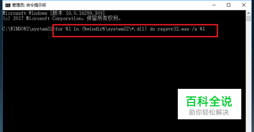 第二步进去命令提示符之后,输入如下图所示,进行重新注册所有dll文件
