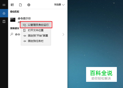 第一步在win10系统任务栏搜索框上,搜索命令,找到命令提示符之后,鼠标右键选择以管理员身份运行,如下图所示: