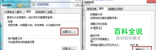 在打开窗口中,点击性能部分的“设置”按钮,并找到“高级”选项卡,如图所示: