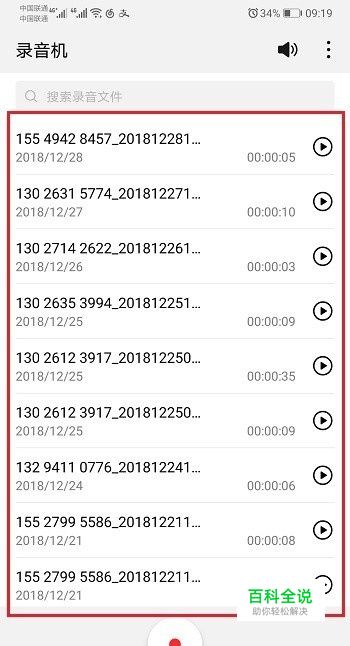 第二步进去录音机之后,可以看到电话录音文件,如下图所示:
