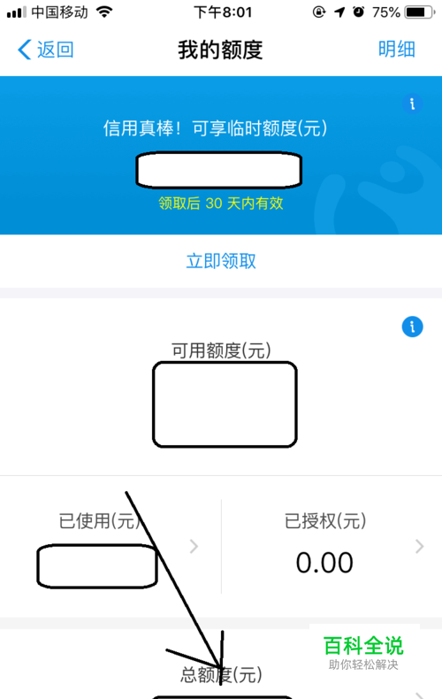然后打开总额度管理界面中点击可编辑的额度按钮。