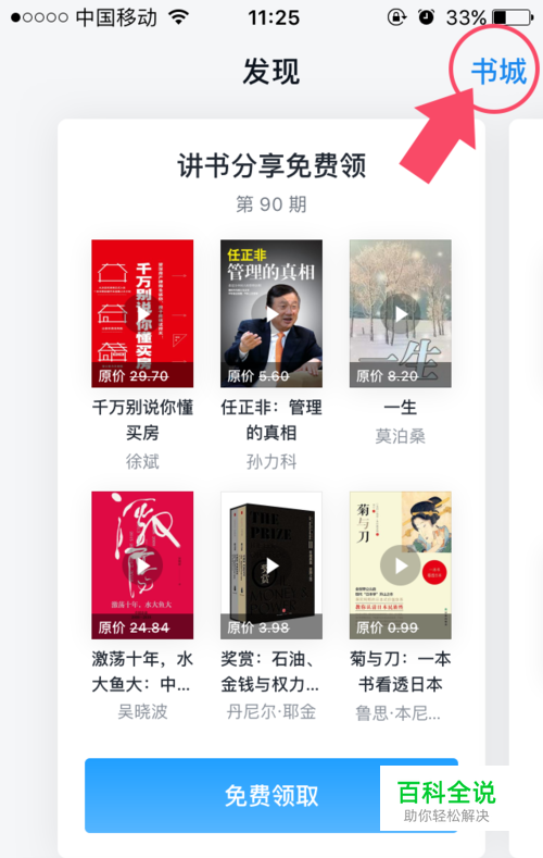 打开手机里的微信读书app,在“发现”页面点击书城。