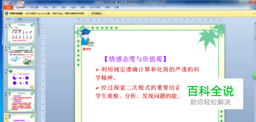 第一步:在PPT2010中打开要提取背景图片的幻灯片。