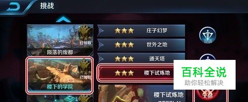 点击进入“稷下的学院”,选择“稷下试炼地”“大师”难度等级。