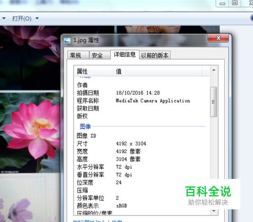 查看你的照片,发现像素为72dpi。在照片属性,详情里面查看