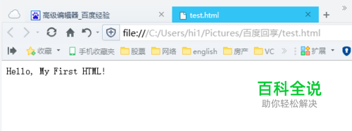 HTML文件,主要由三部分组成. 全文处在标识对<HTML></HTML>内; 文件头标识对<head></head>进行一些预处理; 文件体标识对<body></body>则主要是文件的具体内容.简单HTML如下: <html> <head></head> <body> <p> Hello, My First HTML!</p> </body> </html>