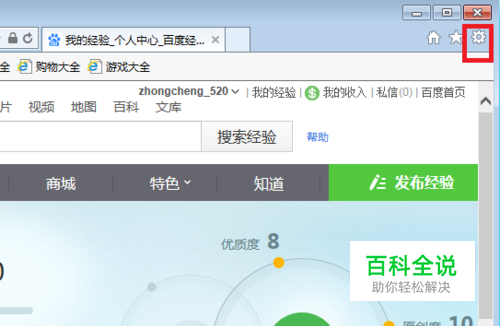 在桌面上找到浏览器图标,双击图标打开浏览器,找到右上角的齿轮形状的图标,如图红色框内。