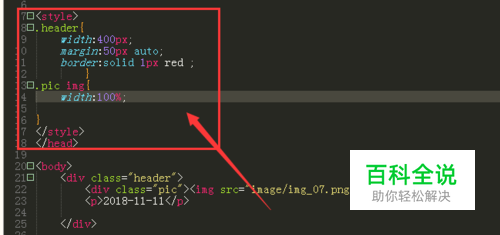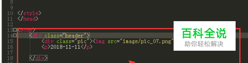 如图;在body中建立文字信息以及图片内容,也就是在header中包含两个同级,图片和文字