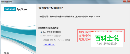 打开AppScan软件,点击工具栏上的 文件–> 新建,点击 “Regular Scan”,出现扫描配置向导页面,这里是选择“Web应用程序扫描,如下图所示: