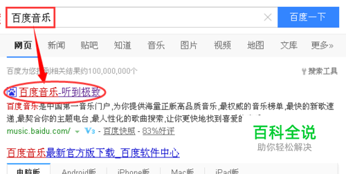 首先我们在浏览器地址栏输入百度的官方网站,进入百度主页后,在搜索栏输入 “百度音乐”,点击搜索,即可进入百度音乐主页。