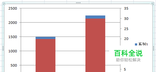 excel作图时,碰到两组数据都用柱状图,但是数量级差距过大,其中一组使用次坐标轴时容易导致两个柱状图重叠,那么怎么分开呢?请看下文。