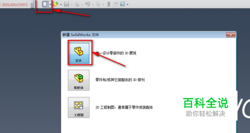 单击“新建”按钮,创建一个零件文件。