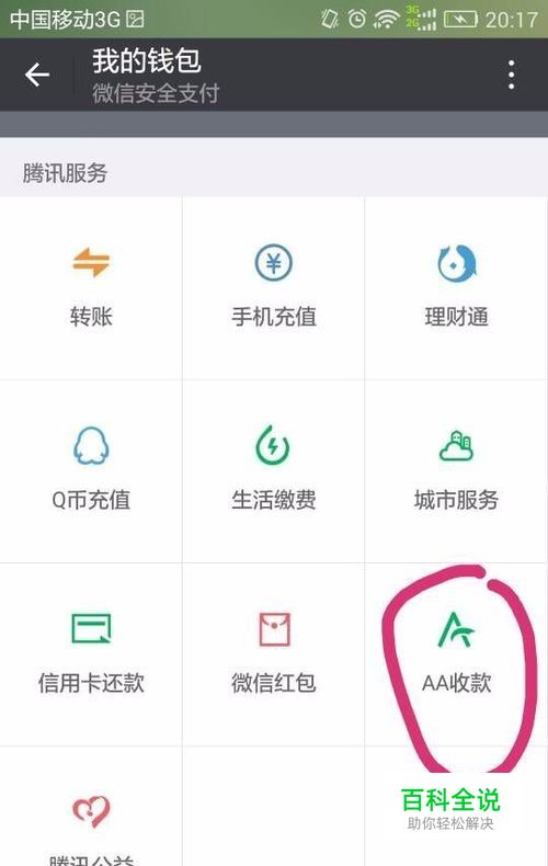 第一步打开微信APP,点击进入到“钱包”,在我的钱包页面可以看到提供的腾讯服务,点击里面的“AA收款”选项。