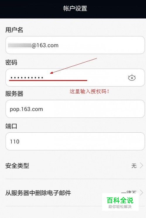 或者在POP设置页面输入。就是把授权码当做密码,在手机里输入就行了。