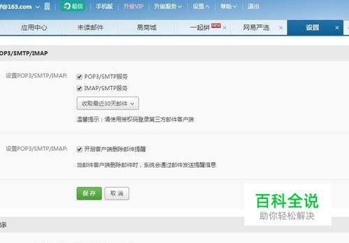 打开POP3/SMTP/IMAP,在前面打对勾。然后保存。