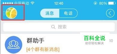 在手机上打开QQ,登录到个人QQ的消息页面,点击左上角的个人头像