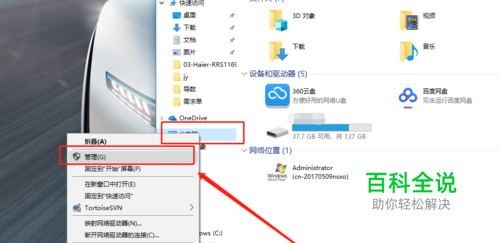 首先,打开电脑,右击此电脑,如果你是win7的话,右击计算机--选择 管理。 win10里面计算机叫我的电脑,在资源管理器中就可以找到,win7一般电脑桌面上都会有。