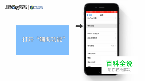 然后点击“通用”再找到并点击“辅助功能”